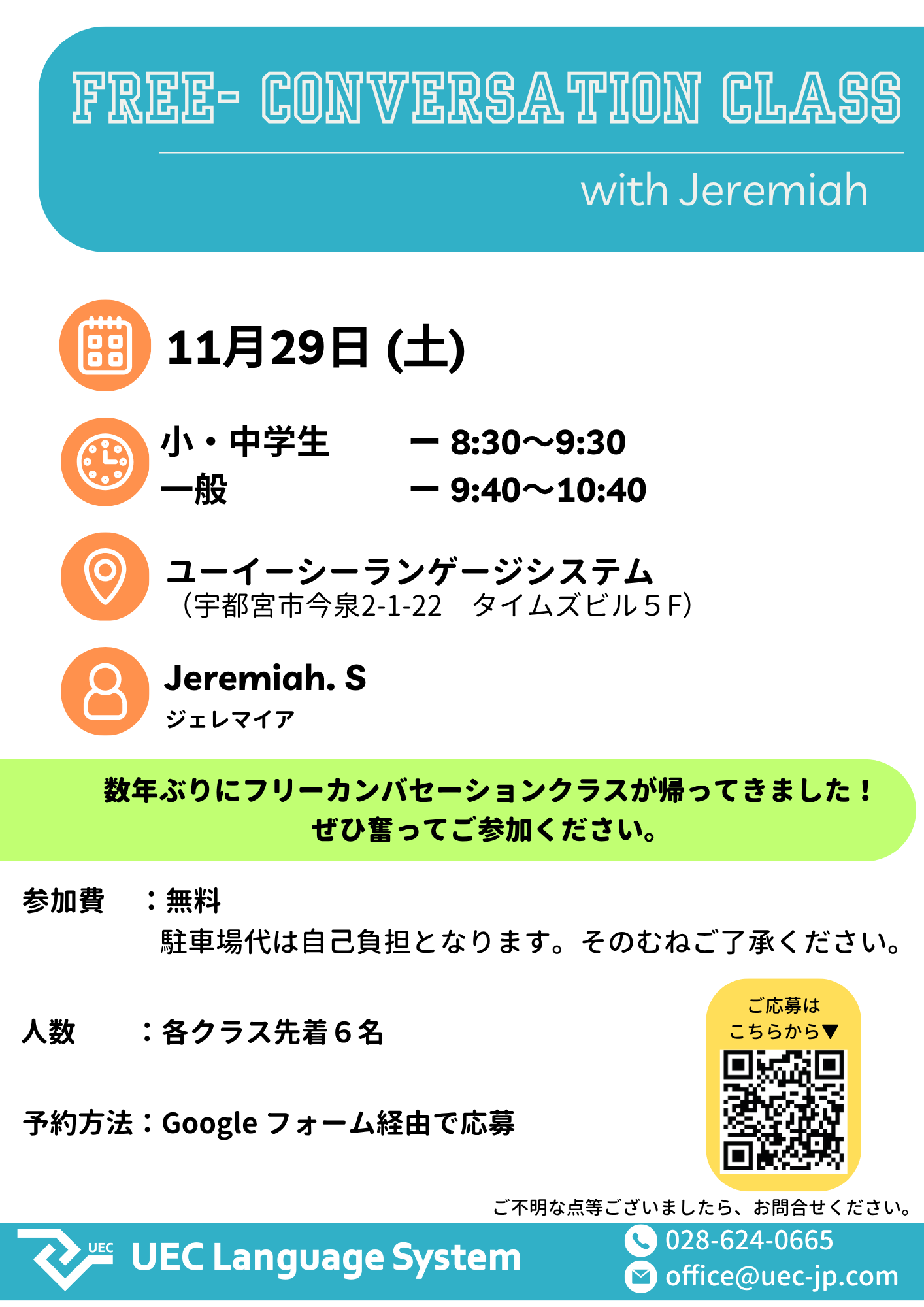 11月29日に開催した「Free Conversation Class」は、おかげさまで無事に終了しました!
